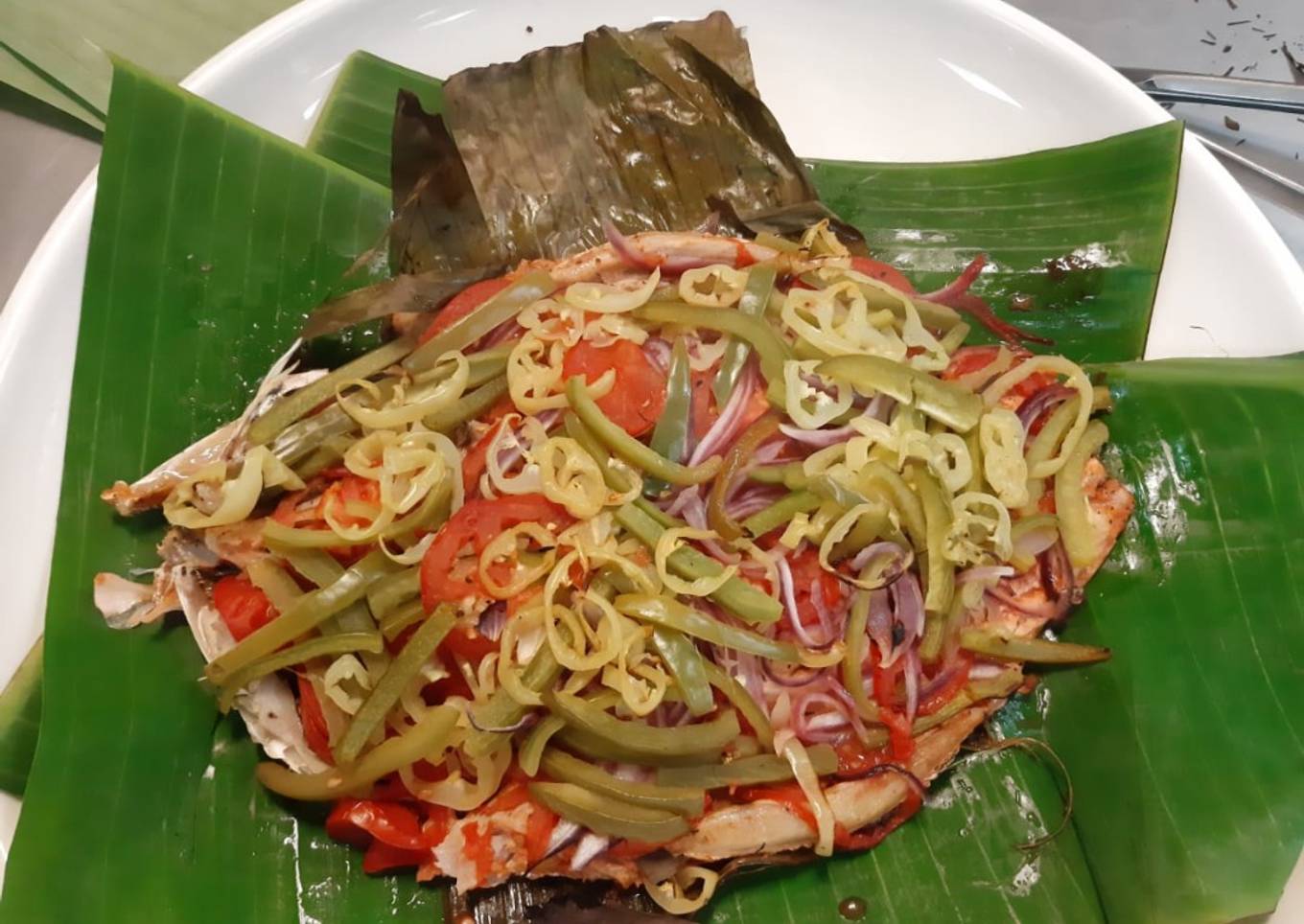 - Cubrir con los vegetales y envolver en hoja de plátano, reposar en frío durante 30 minutos.