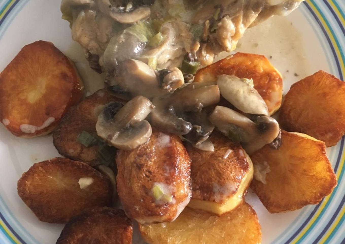 - Dejar a fuego lento hasta que los champiñones tomen color.