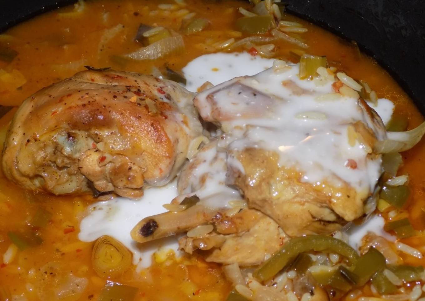 - Apagar el fuego, tapar y dejar 5 minutos descansar - servir caliente el pollo junto a una cucharada de arroz y la salsita
