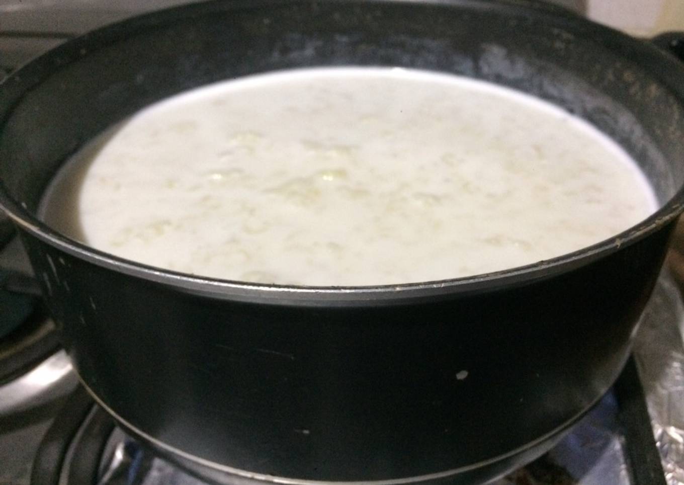 - Preparamos la leche con una taza de agua licuándola, ya que esté bien cocido el arroz vertemos la leche y dejamos hervir un minuto, apagamos, dejamos enfriar y lo llevamos al refrigerador