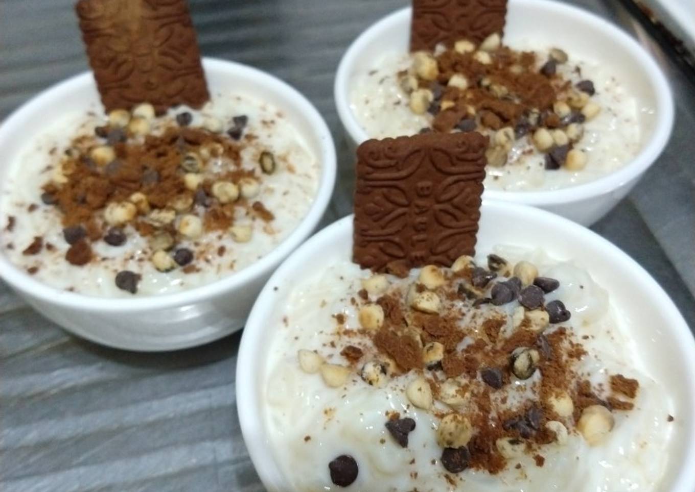 - Una vez frío servimos y podemos hacerlo como más te guste, solo, con un poquito de dulce de leche en el fondo, en mi caso lo serví y le puse unos chips de chocolate una galletita de chocolate molida y una más para decorar 👍