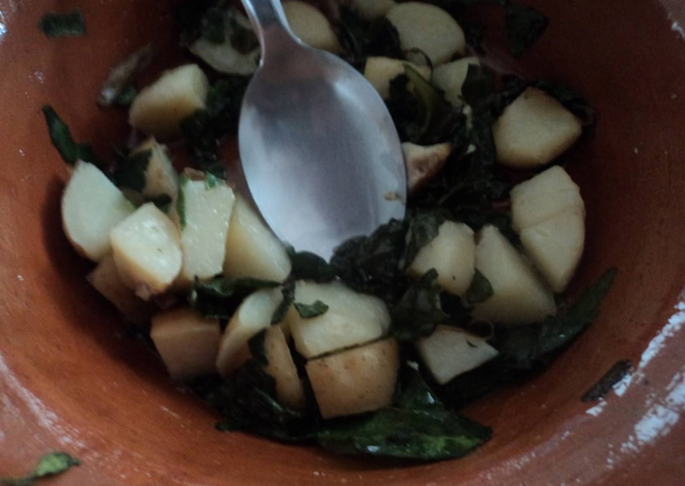 Papas con quelite y epazote a lo ranchero