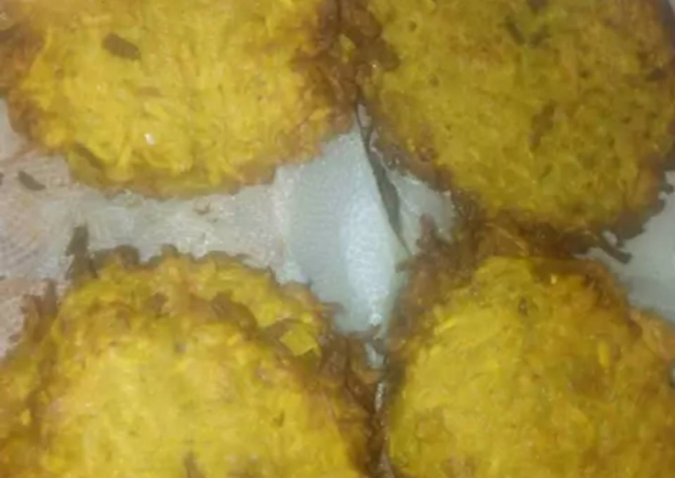 - Ahora, con una cuchara ponemos la mezcla y en el mismo sartén. Le damos forma a las tortitas. Ya que quedan muy flácidas y no se puede darle la forma con las manos. Agregamos al sartén bien caliente a medio fuego y dejamos cocer por espacio de 3 minutos de cada lado. Ya cocidas, las sacamos y las colocamos en un recipiente con papel absorbente y listo. A comer con arroz, blanco o con espagueti.