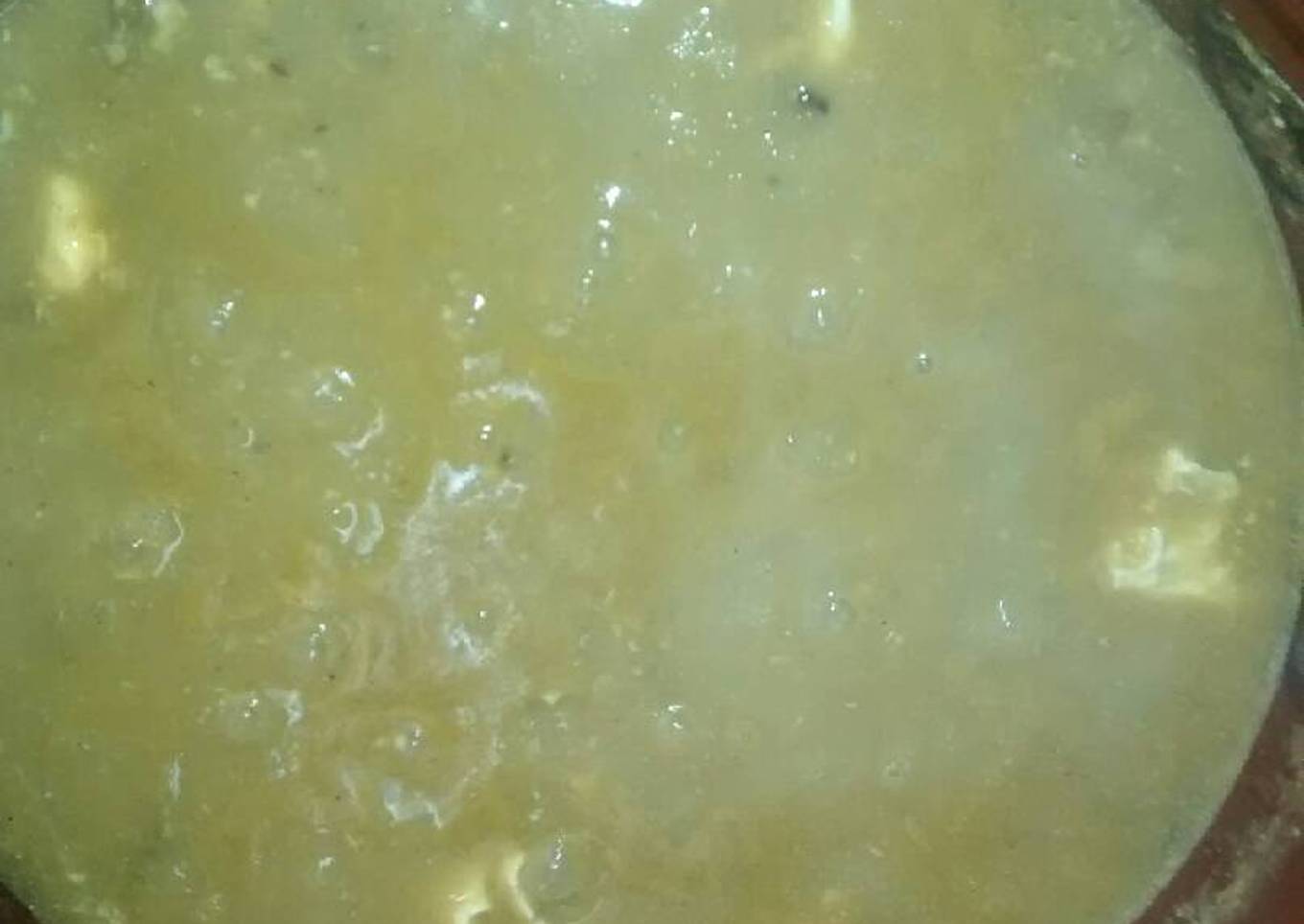 - Ya hervido ponlo en la licuadora directamente y ponle el ajo y la cebolla y licualo. Ya licuado ponlo en una olla con aceite caliente y con unas rodajas de cebolla ya sazonadas y dejalo que haga volcancitos.