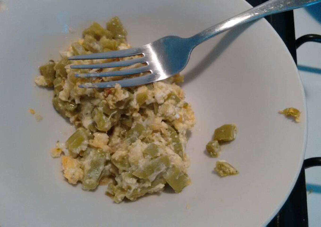 Steps to make to make Huevos con nopales en salsa verde. ॐ