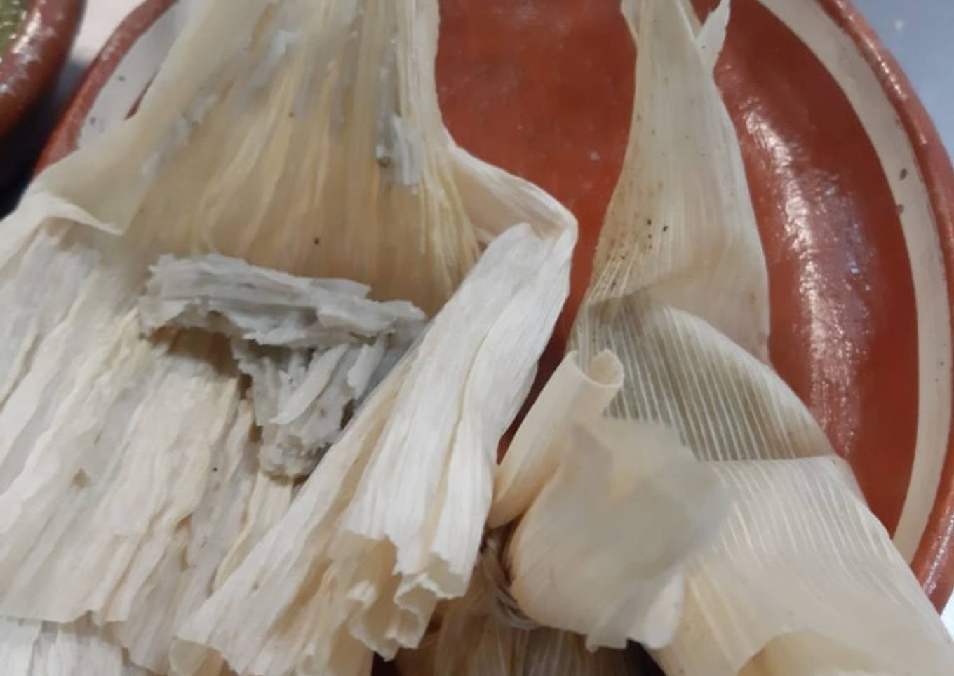 - Remojar las hojas de totomoxtle en agua tibia durante 10 minutos, retirar y reservar.