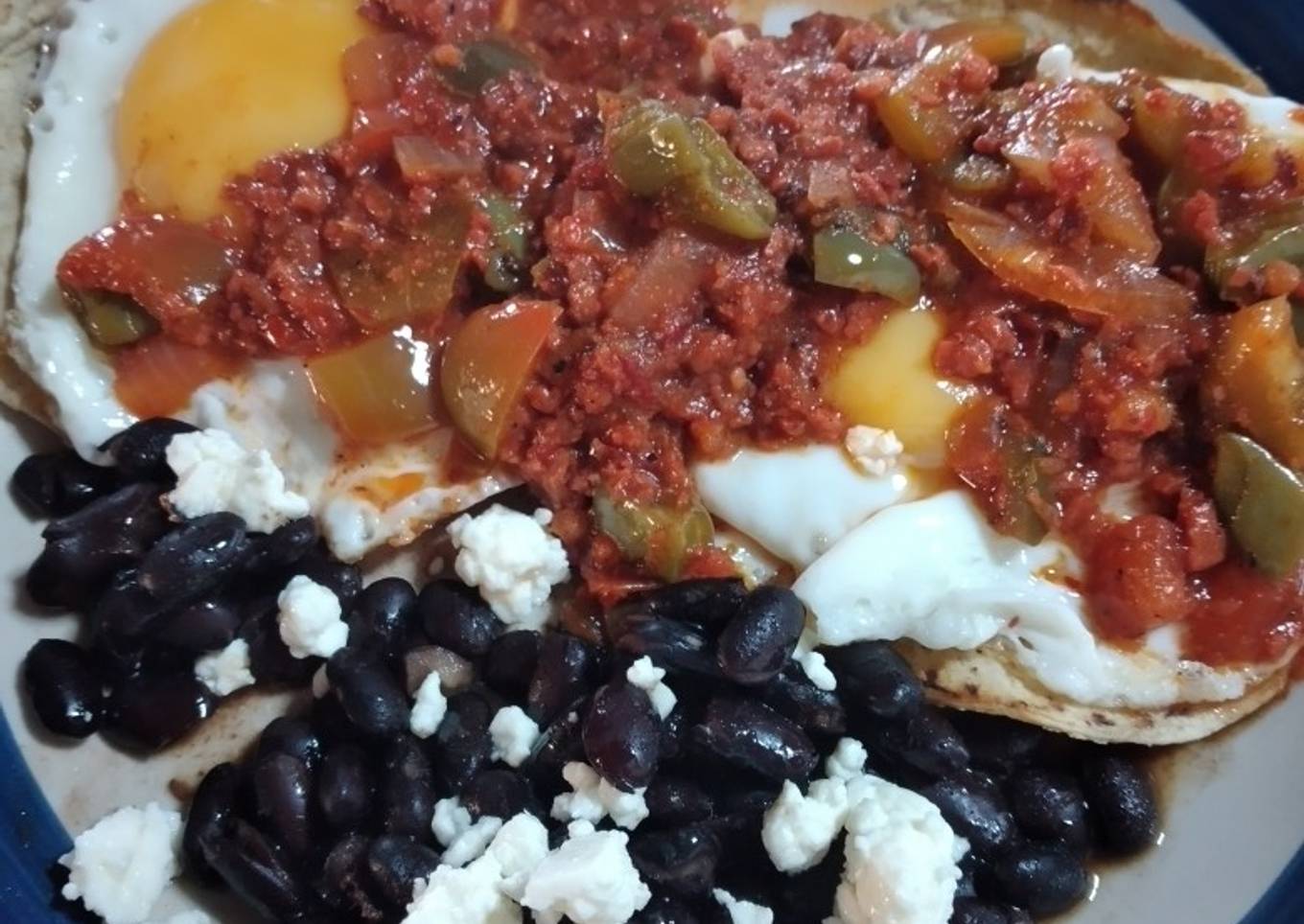 Deliciosos huevos sobre tostada y salsa ranchera con chorizo y nopales #micaminito